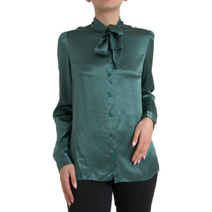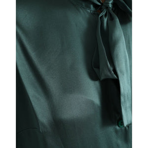 Dolce & Gabbana Dark Green Silk Ascot Collar Blouse Top