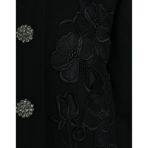 Dolce & Gabbana Black Floral Wool Button Embellished Jacket
