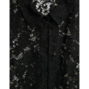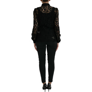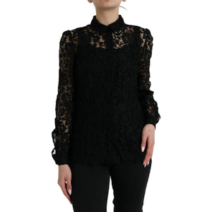 Dolce & Gabbana Black Floral Lace Long Sleeves Blouse Top