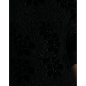 Dolce & Gabbana Black Floral Lace Cotton Bodycon Dress