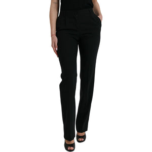 Dolce & Gabbana Black Wool Mid Waist Tapered Pants