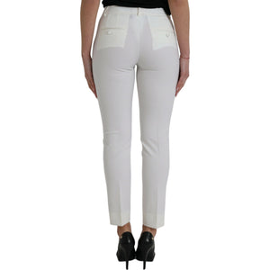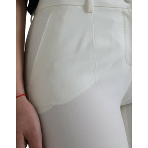 Dolce & Gabbana White Wool Mid Waist Tapered Pants