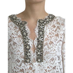 • Dolce & Gabbana White Lace Crystal Embellished Shift Dress DR281122-42