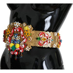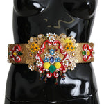 Dolce & Gabbana Embellished Floral Crystal Wide Waist Golden Belt