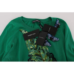 Dolce & Gabbana Green Silk Crystal Banana Sweater