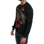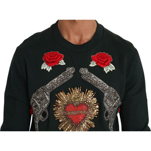 Dolce & Gabbana Green Crystal Heart Roses Gun Sweater