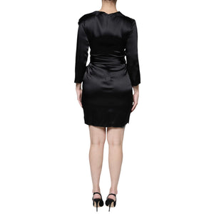 Emporio Armani Black Satin Long Sleeves Wrap Sheath Mini Dress