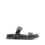 black touch-strap fastening flat rubber sole debossed logo to the front braided edge Leather sandals Size and Fit - Heel 1,2 in / 3 cm