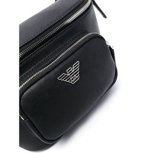 leather logo-plaque bag from EMPORIO ARMANI featuring black, calf leather, logo plaque, single shoulder strap, front zip-fastening pocket and front zip fastening. Logo belt bag Size and Fit - Width 9,84 in / 25 cm Height 5,91 in / 15 cm Depth 1,97 in / 5 cm Strap 23,62 in / 60 cm
