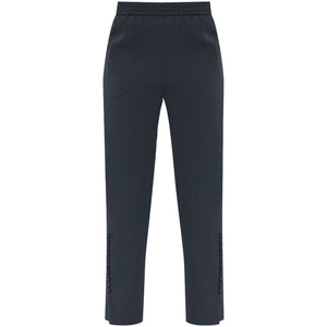 navy blue elasticated waistband two side slit pockets decorative button detailing side slits Slim fit trousers Size and Fit - This piece fits true to size. We recommend you get your regular size. Model is 1,75m / 5ft 8in wearing size 40 (IT)