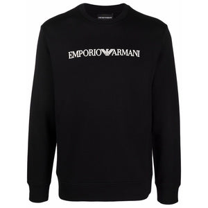 Black/white modal-cotton blend logo-print crew-neck sweatshirt from EMPORIO ARMANI featuring jersey fleece, logo print to the front, crew neck, long sleeves and straight hem. Logo cotton sweatshirt Size and Fit - This piece fits true to size. We recommend you get your regular size. Model is 1,84m / 6ft 1in wearing size M