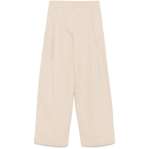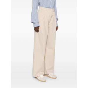 light beige concealed front button, hook and zip fastening two side inset pockets dart detailing embroidered logo to the rear Cotton wide-leg trousers Size and Fit - This piece fits true to size. We recommend you get your regular size. Model is 1,75m / 5ft 8in wearing size 40 (IT)