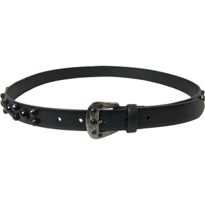 Dolce & Gabbana Black Embellished Leather Engraved Buckle Belt