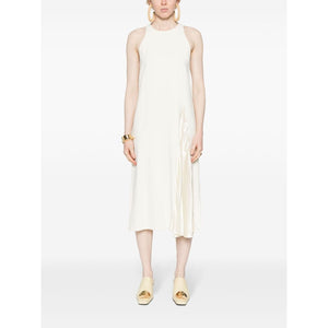 cream white stretch-design round neck sleeveless racerback mid-length unlined flared hem single rear button fastening Sleeveless midi dress Size and Fit - This piece fits true to size. We recommend you get your regular size. Model is 1,75m / 5ft 8in wearing size 40 (IT)