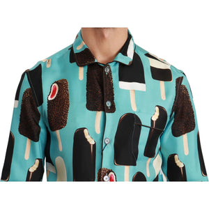 Dolce & Gabbana Blue Silk Ice Cream Print Casual Shirt