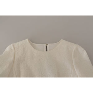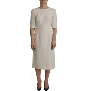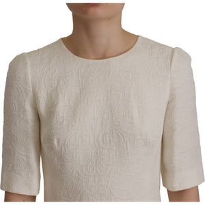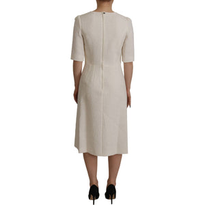 Dolce & Gabbana White Jaquard Midi Floral Sheath Brocade Dress