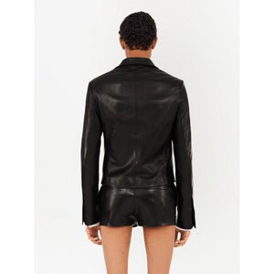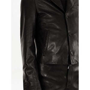 slim-cut single-breasted leather blazer from Ferragamo featuring chest welt pocket, two front welt pockets, black, nappa leather, classic lapels, front button fastening and long sleeves. Leather jacket Size and Fit - This piece fits true to size. We recommend you get your regular size. Model is 1,84m / 6ft 1in wearing size 48 (IT)