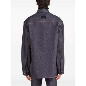 Una silhouette classica dalle proporzioni contemporanee, camicia sportiva in denim di puro cotone lavato, Le linee sono morbide, ma pulite, con spalla scesa, colletto alto a punta e bottoni a chiodo in metallo lungo l'abbottonatura, Da notare i polsini c Cotton shirt Size and Fit - This piece fits true to size. We recommend you get your regular size. Model is 1,84m / 6ft 1in wearing size 48 (IT)