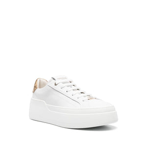 white/gold-tone calf leather panelled design gold-tone logo plaque logo patch at the tongue contrasting heel counter embossed logo to the rear round toe front lace-up fastening padded ankle leather lining branded leather insole chunky rubber sole Platform leather sneakers Size and Fit - Our boutique offers the following fittings: M (medium) for sporty women shoes and C (wide) for classic women shoes. Do not hesitate to contact us to have more information.