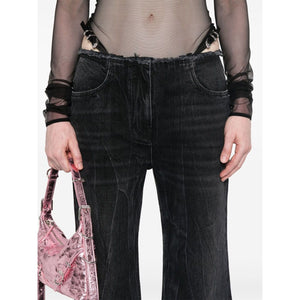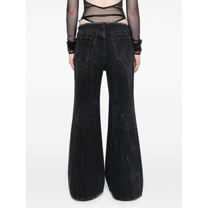 black cotton denim whiskering effect at the thighs belted waist frayed edge front press-stud and zip fastening flared two side inset pockets two rear patch pockets straight hem long length Wide-leg denim cotton jeans Size and Fit - This piece fits true to size. We recommend you get your regular size. Model is 1,75m / 5ft 8in wearing size 27 (WAIST CM)
