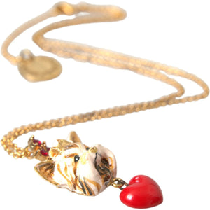 Dolce & Gabbana Gold Brass Chain Dog Heart Pendant Charm Necklace