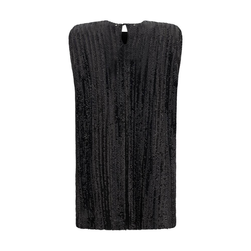 The Sequined Mini Dress by Golden Goose is a bold and sparkling piece perfect for special occasions. The sleeveless design and classic crew neck offer an elegant, understated cut, while the padded shoulders add structure and a tailored touch. The back button closure completes the design, keeping the silhouette clean and refined. The sequin design gives the dress a bright, modern effect, making it ideal for those seeking a glamorous look with a contemporary twist.