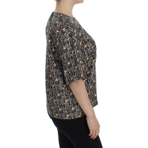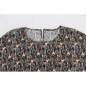 Dolce & Gabbana Gray Gold Key Print Silk Blouse T-shirt