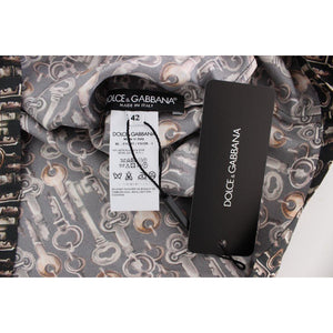 • Dolce & Gabbana Gray Gold Key Print Silk Blouse T-shirt
