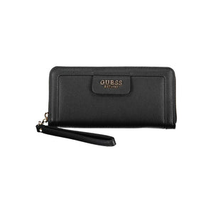 Elevate your accessory game with the Guess Jeans exquisitely designed wallet, a perfect blend of style and functionality. Its black hue is accented with contrasting details that make a bold statement, while the embossed logo adds a touch of iconic luxury. This wallet features five compartments, a handy coin purse, ample spaces for your cards, and an additional external pocket for easy access. Crafted from premium polyethylene for a durable finish, it’s a sophisticated staple for any fashion-forward individual.