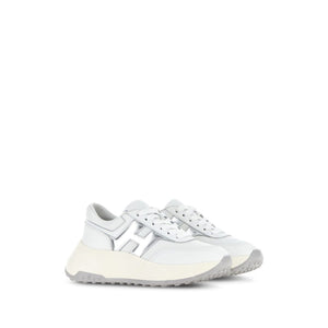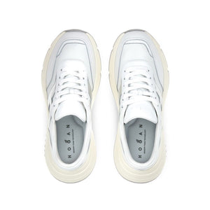 white leather front lace-up fastening logo-embellished side panels logo-embossed tongue branded insole rubber sole round toe Hi-Fi leather sneakers Size and Fit - Heel 2,6 in / 6,5 cm