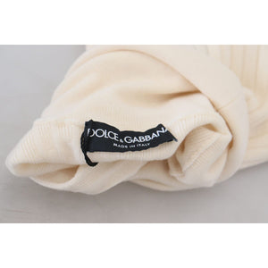 Dolce & Gabbana Ivory Turtleneck Distressed Cuff Pullover Sweater
