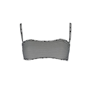 BAND SWIMSUIT, LINED INTERIOR, REMOVABLE PADDING, REMOVABLE STRAPS, CONTRASTING DETAILS, CLIP CLOSURE, PRINT, LOGO