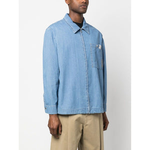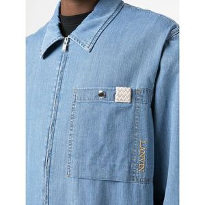 zip-up denim shirt from Lanvin featuring light blue, cotton, embroidered logo, classic collar, front zip fastening, long sleeves and front patch pocket. Denim shirt Size and Fit - This piece fits true to size. We recommend you get your regular size. Model is 1,84m / 6ft 1in wearing size 48 (IT)