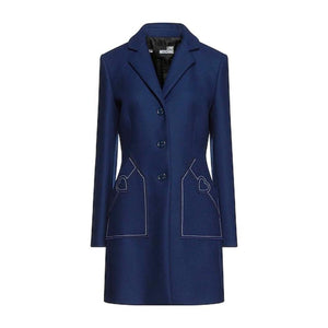 Elevate your style game with this exquisite Love Moschino wool coat, a true embodiment of elegance intertwined with playful charm. Crafted with the finest wool, this coat features a striking blue hue that’s sure to turn heads. Its classic button closure meets modern sophistication with a playful heart embroidery adorning the 2-pocket design. Originating from the fashion-forward streets of TN, this coat is a staple for the woman who dares to stand out.