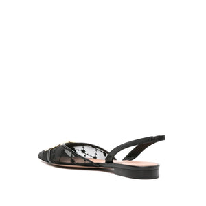 black mesh design floral embroidery crystal buckle detail leather trim pointed toe elasticated slingback strap branded leather footbed low stacked heel leather sole This piece comes complete with a protective dust bag. Misha embellished mesh slingback ballet flats Size and Fit - Heel 0,6 in / 1,5 cm