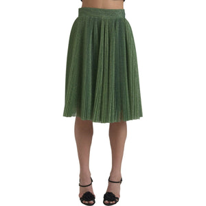 Dolce & Gabbana Metallic Green High Waist A-line Pleated Skirt