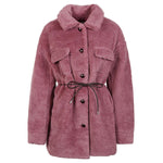 Pink coat, closure with buttons, two fake pockets at the top, waist belt, two low pockets, long sleeves, shirt -style collar. Faux fur coat Size and Fit - This piece fits true to size. We recommend you get your regular size. Model is 1,75m / 5ft 8in wearing size S