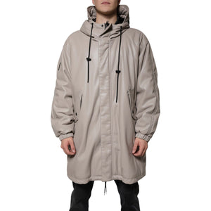 MSGM Beige Full Zip Hooded Long Sleeves Casual Coat Jacket