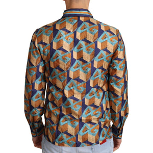 Dolce & Gabbana Multicolor DG Logo Silk Mens Top Shirt