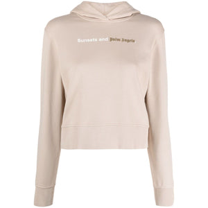 beige cotton logo print at the chest slouchy hood long sleeves straight hem Sunset cotton hoodie Size and Fit - This piece fits true to size. We recommend you get your regular size. Model is 1,75m / 5ft 8in wearing size S