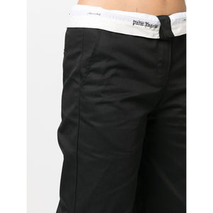 reversed waistband trousers from PALM ANGELS featuring black/white, cotton blend, logo waistband and straight leg. Flare-leg trousers Size and Fit - This piece fits true to size. We recommend you get your regular size. Model is 1,75m / 5ft 8in wearing size S