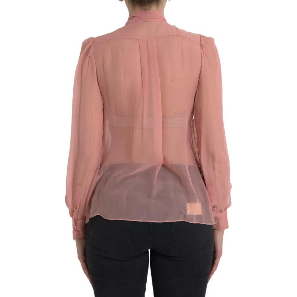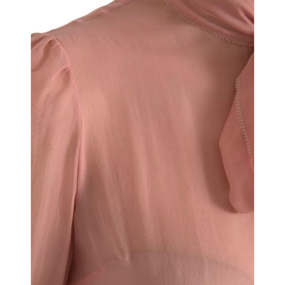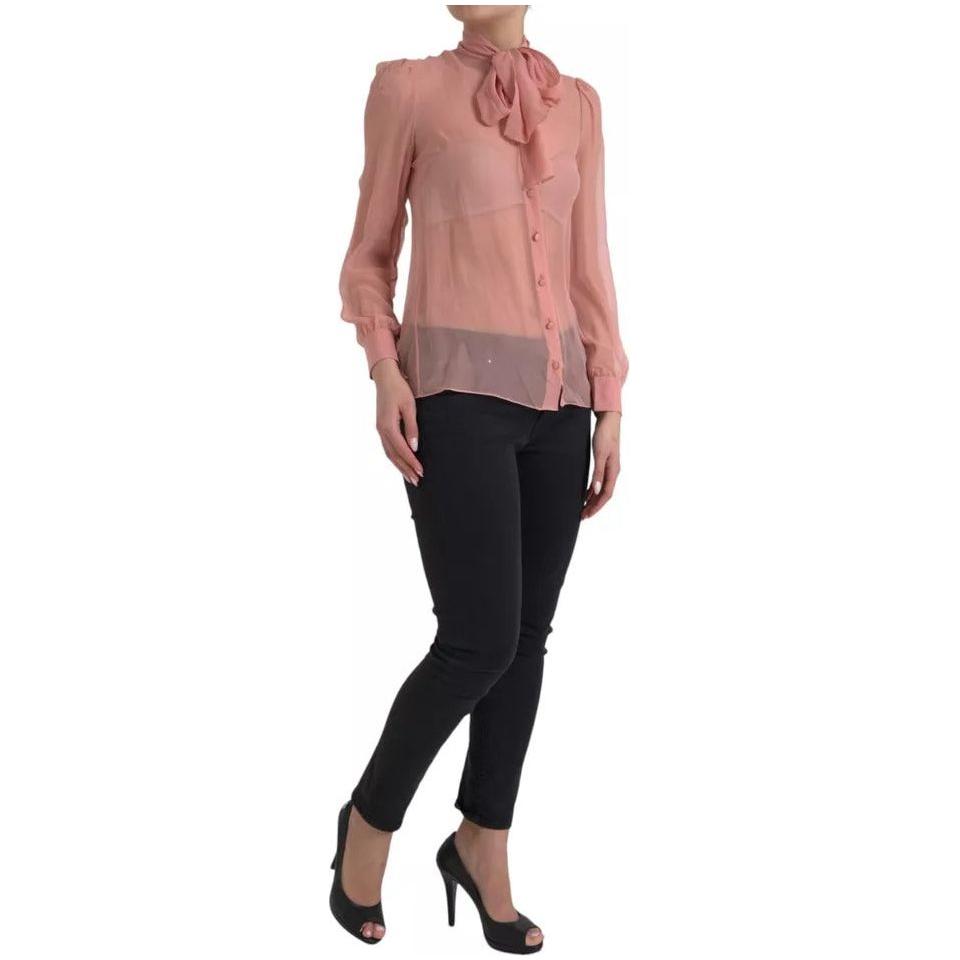 Dolce & Gabbana Pink Long Sleeves Ascot Collar Top Blouse