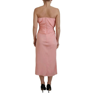 Dolce & Gabbana Pink Silk Stretch Strapless Sheath Midi Dress DR28885-36