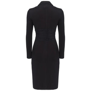 Pinko dress in technical stretch viscose fabric with a fluid neoprene effect and a gathered georgette band detail on the chest. Fitted line with a shirt collar and long sleeves. Front metal zip fastening