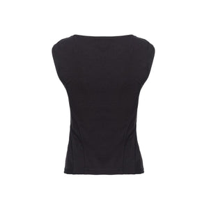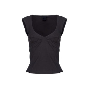 Elevate your wardrobe with PINKO’s sleeveless top, embodying sleek sophistication with a touch of Italian flair. This black viscose blend piece, with a hint of nylon and elastane for a comfortable stretch, features a wide neckline that exudes effortless elegance. A functional side zip ensures a sleek fit for any silhouette. Perfect for transitioning from office chic to evening glam, this top guarantees to make a bold statement.