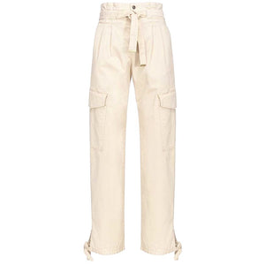 Indulge in the epitome of chic comfort with PINKO’s Coperto Trousers. Tailored to perfection, these ivory white pants boast a sophisticated six-pocket design, seamlessly blending functionality with fashion. Crafted from a luxurious blend of cotton and elastane, they ensure both a flattering fit and effortless movement. The unique ribbon drawstrings at the ankle and waist add a playful yet elegant touch to these versatile trousers. Elevate your wardrobe with this must-have piece from PINKO’s exquisite collection.