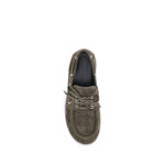 The Proenza Schouler Deck Loafers are crafted from suede and feature a rigid rounded toe and low block heel for comfort and style. The upper features boat-shoe-inspired laces, adding a sophisticated nautical edge to the classic design.