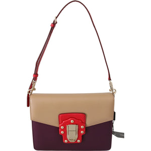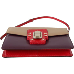 Dolce & Gabbana Purple Beige Red Leather Crossbody Purse Bag