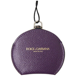Dolce & Gabbana Purple Calfskin Leather Round Hand Mirror Holder