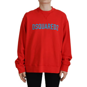 Dsquared² Red Cotton Printed Crew Neck Long Sleeve Sweater